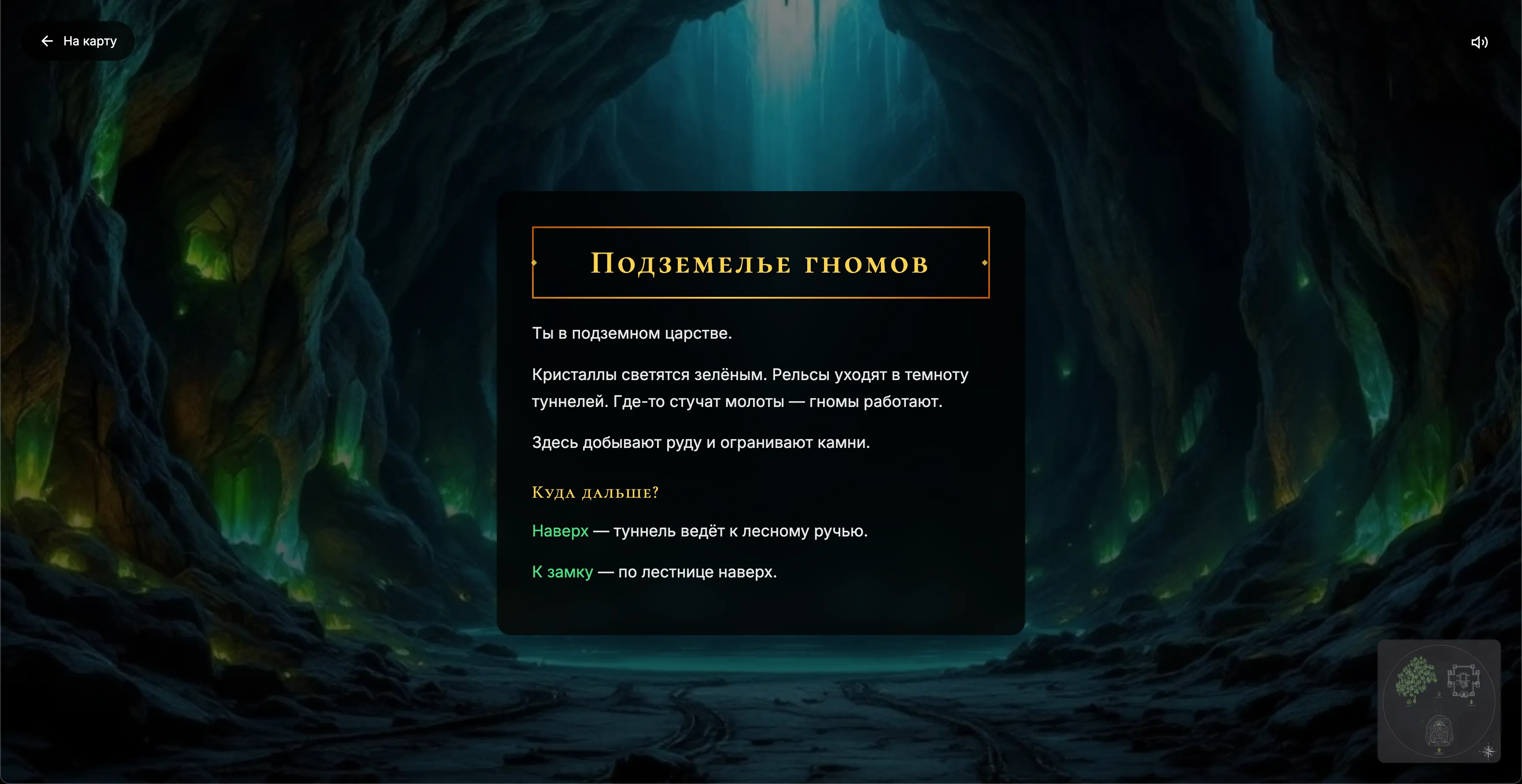 Генерировали через FLUX.2 с теми же принципами: тёмный центр для текста, зелёные кристаллы для визуальной связи с основной локацией подземелья.
